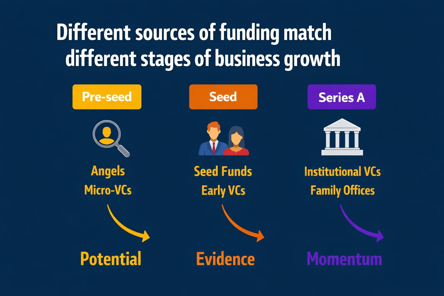 Different types of funders will be interested in your business depending on your stage of growth.